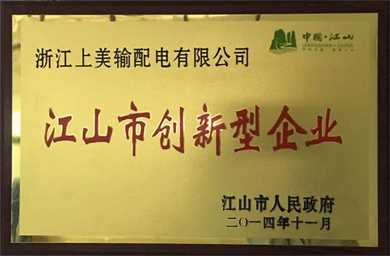 祝贺上美公司成为《江山市创新型企业》