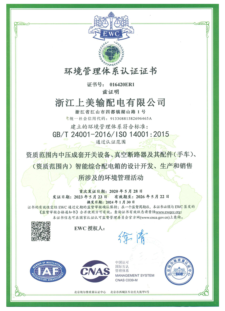 环境管理体系认证证书