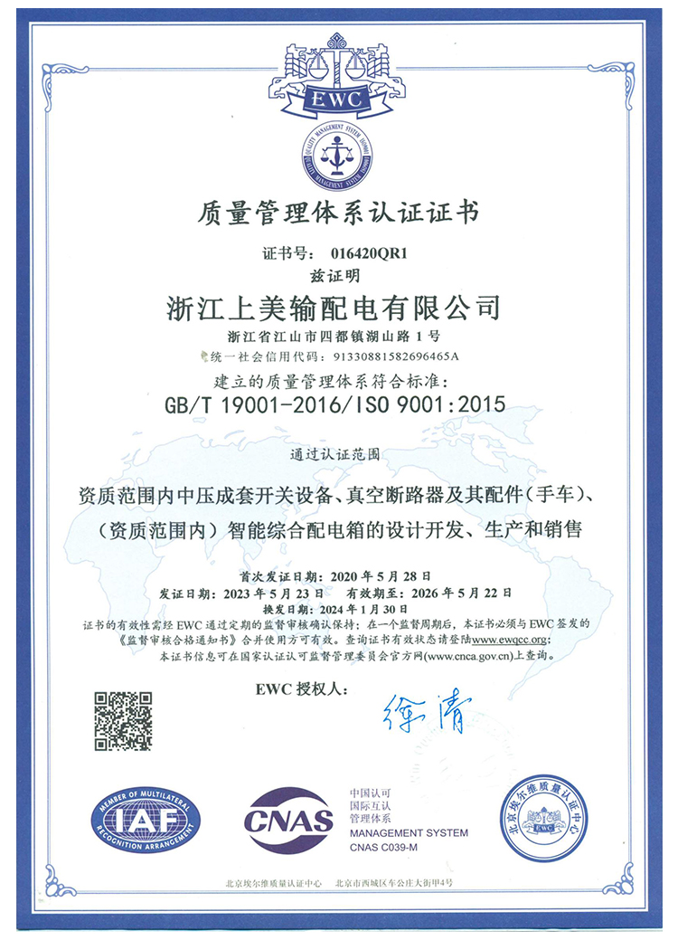 质量管理体系认证证书