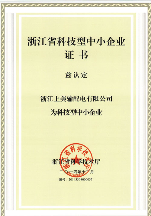 上美输配电科技型企业证书